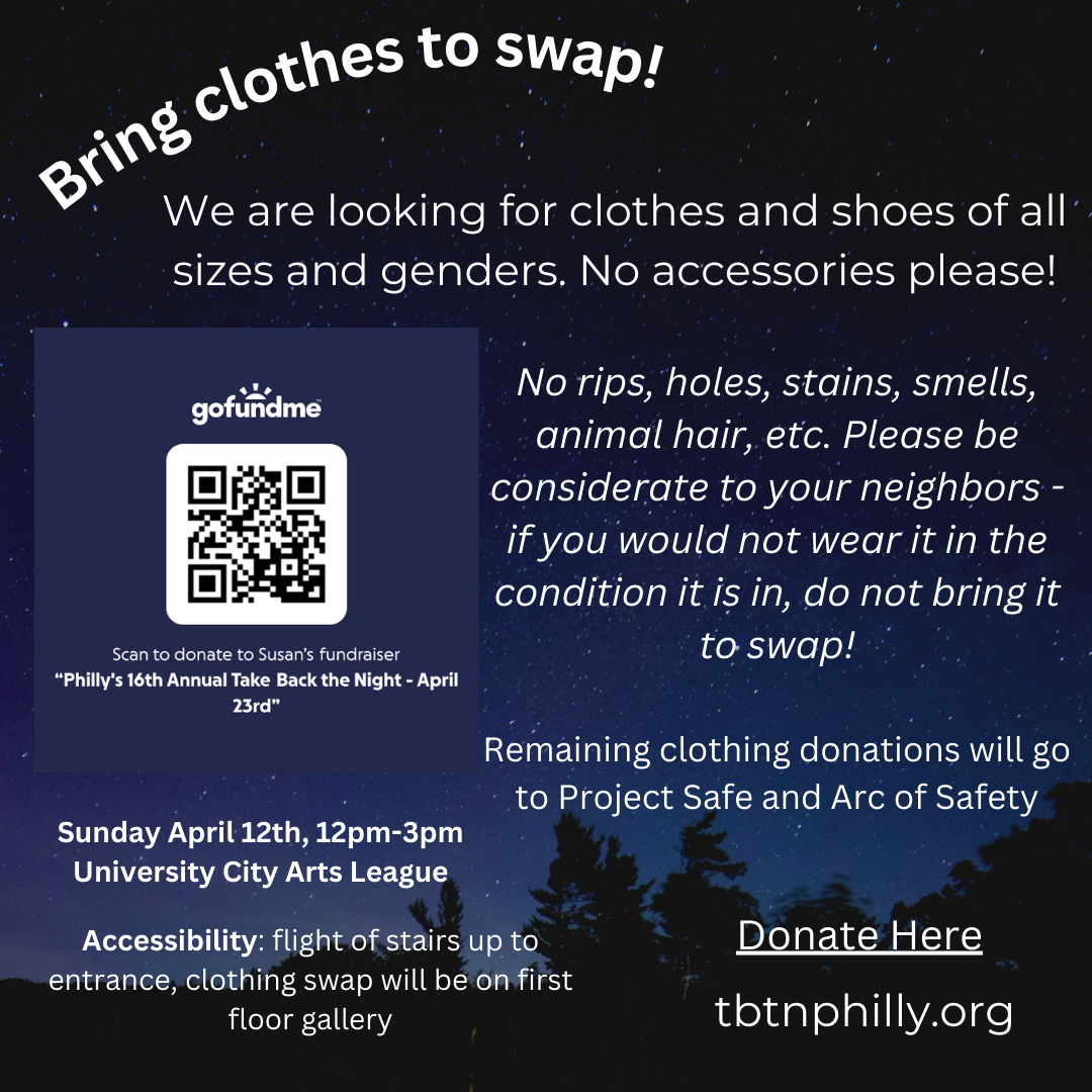 We will be hosting a Clothing Swap fundraiser at the University City Arts League on April 12th, from Please see flyer and info below: